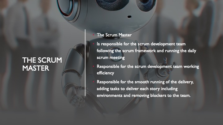 The Scrum Master Is responsible for the scrum development team following the scrum framework and running the daily scrum meeting