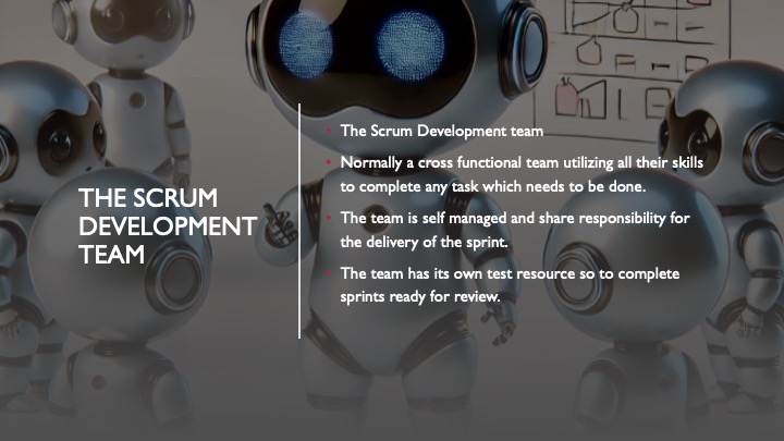 The Scrum Development team is normally a cross functional team utilising all their skills to complete any task which needs to be done.